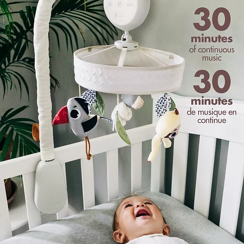 Incluez le Boho Chic Mobile dans votre routine du coucher et laissez la combinaison attrayante de mouvement et de musique aider à préparer votre tout-petit au sommeil. Essayez le mode feutrage pour aider votre bébé à s’endormir de manière autonome.