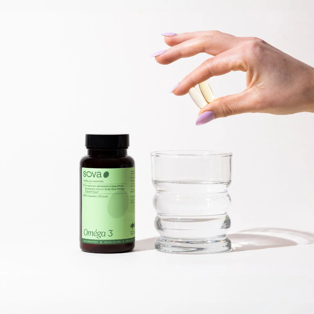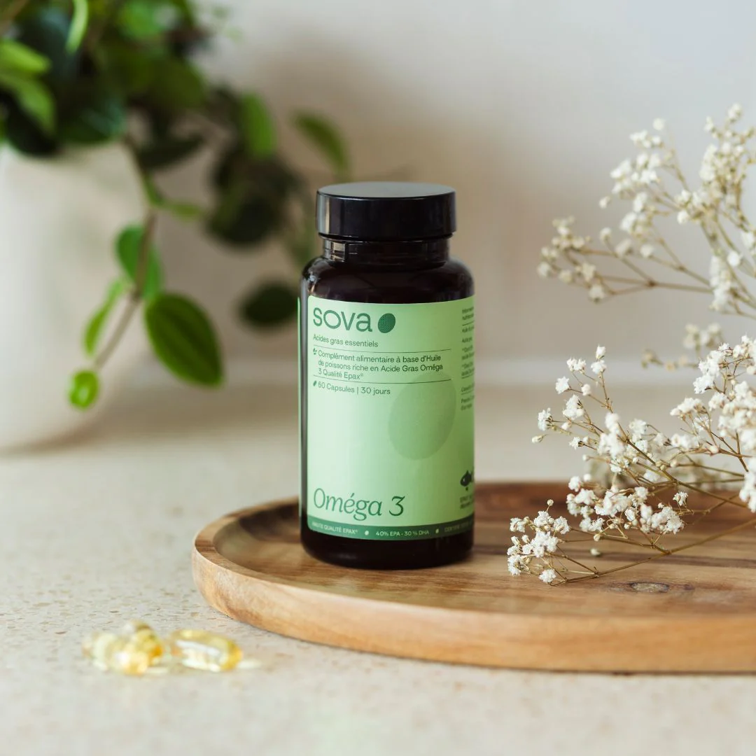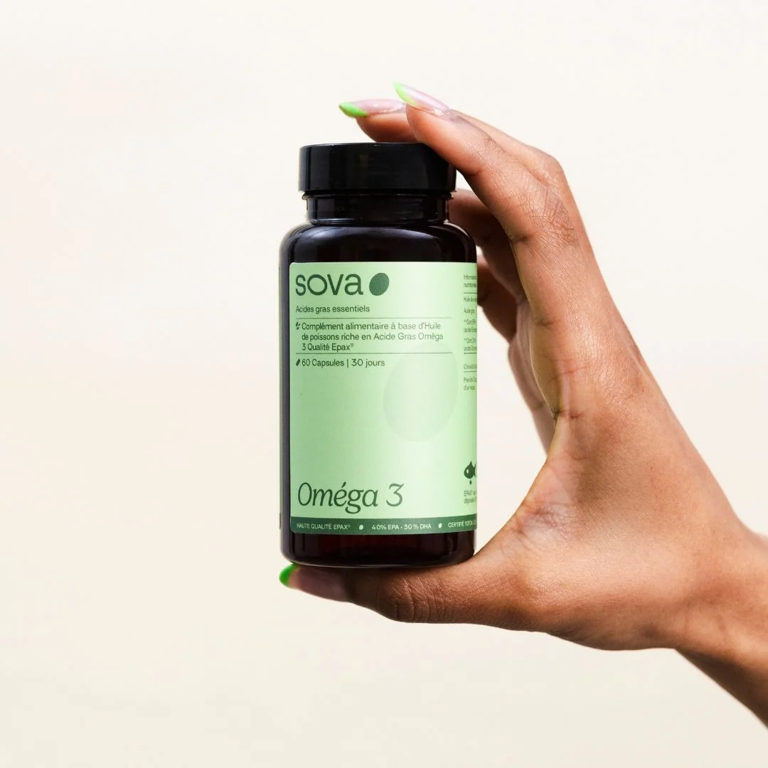 Oméga‑3 (EPA & DHA) d’origine marine soutient le fonctionnement du cœur et du cerveau ainsi que l’équilibre hormonal. Il contribue également au développement du fœtus.