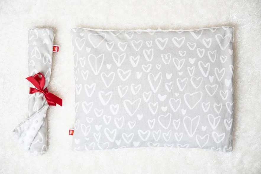 Oreiller pour enfant – Cœurs gris