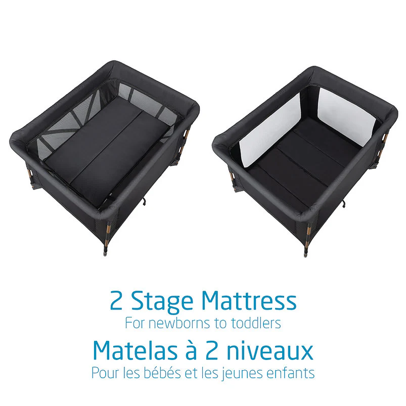 Le Swift est doté d’un matelas unique à 2 niveaux qui se dézippe pour s’adapter parfaitement à la nacelle. Le parc offre ainsi un matelas plus petit et plus confortable, idéal pour les nouveau-nés. Au fur et à mesure que votre bébé grandit, le matelas se referme pour créer un espace plus grand et super confortable pour la récréation ou une sieste bien méritée.