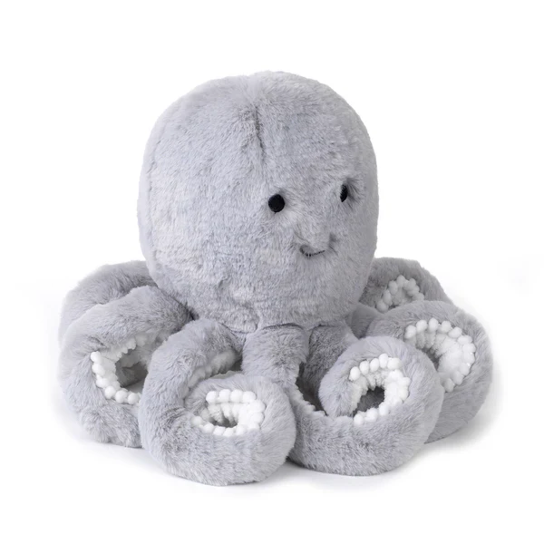 Rencontrez Inky. C’est le plus mignon des petits poulpes en peluche minky gris. Il a du velours côtelé blanc sous ses tentacules ainsi que des garnitures à pompons blancs. Ses yeux et sa bouche sont brodés, ce qui le rend sans danger pour tous les âges, même pour les bébés. Parfait pour faire des câlins à votre tout-petit et devenir à coup sûr son meilleur ami en peluche.
