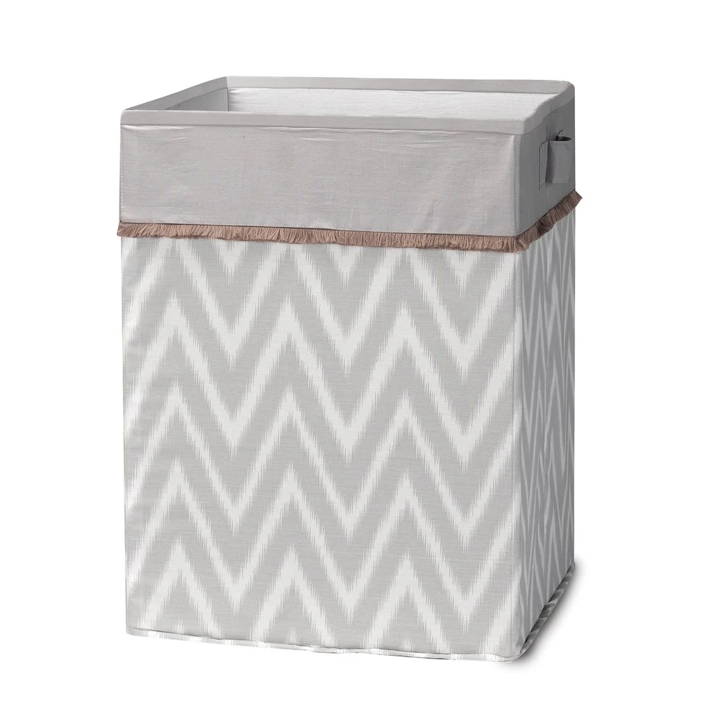 Ce panier léger est un excellent moyen de ranger les jouets préférés de bébé. Il s’agit d’une palette de couleurs neutres d’un imprimé à chevrons gris et blanc avec une bordure de cils beige et une reliure grise unie en haut. Il mesure 14″ X 14″ X 19″ de haut. Il y a deux poignées latérales et il est entièrement pliable pour un rangement facile.