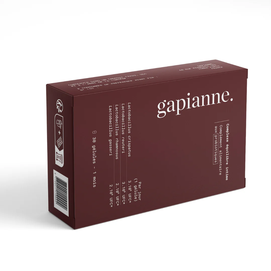 Livraison à partir de fin janvier 2026 Le complexe probiotiques Gapianne, conçu avec des experts gynécologues et pharmaciens, contribue à atténuer les sensations d’inconfort intime telles que démangeaisons, brûlures ou odeurs.