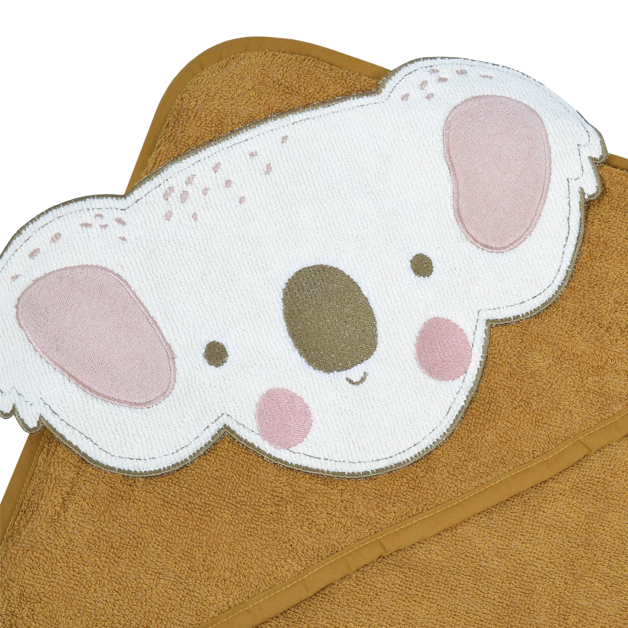Réf.: PE SA2204 KOALAFabricant: Perlimpinpin Super absorbante, cette serviette à capuchon donnera à votre petit bébé une raison de plus d’aimer l’heure du bain ! Confortable et rassurante, elle gardera bébé au chaud et au sec. Composition : 85% coton, 15% polyester 29.5 x 29.5 pouces