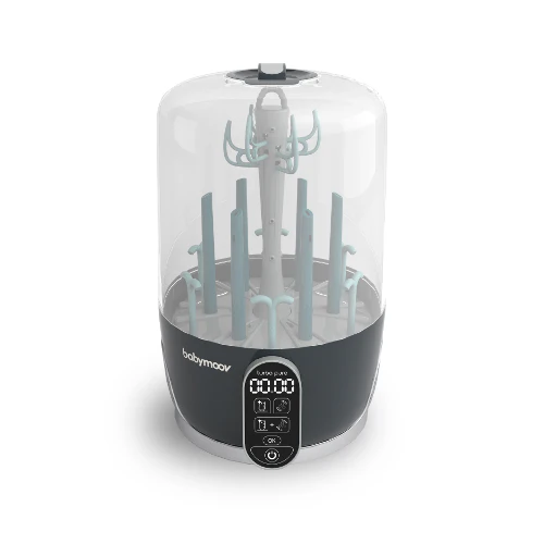 Grâce à des cycles de séchage et de purification personnalisables de 30, 45 ou 60 minutes, les parents peuvent choisir le réglage idéal selon leurs besoins. Conçu pour être polyvalent, le stérilisateur est doté d’embouts universels et amovibles qui s’adaptent à tous les types de biberons, accessoires de tire-lait, tétines, jouets, etc. L’écran tactile LCD intuitif simplifie l’utilisation et offre une expérience utilisateur fluide.