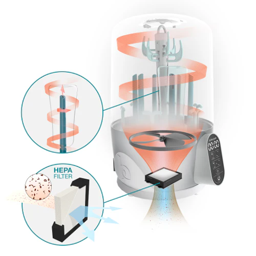 - Stockage hygiénique 24 heures sur 24 : garde les biberons stérilisés dans un environnement purifié jusqu’à 24 heures, garantissant qu’ils sont toujours prêts lorsque vous en avez besoin.