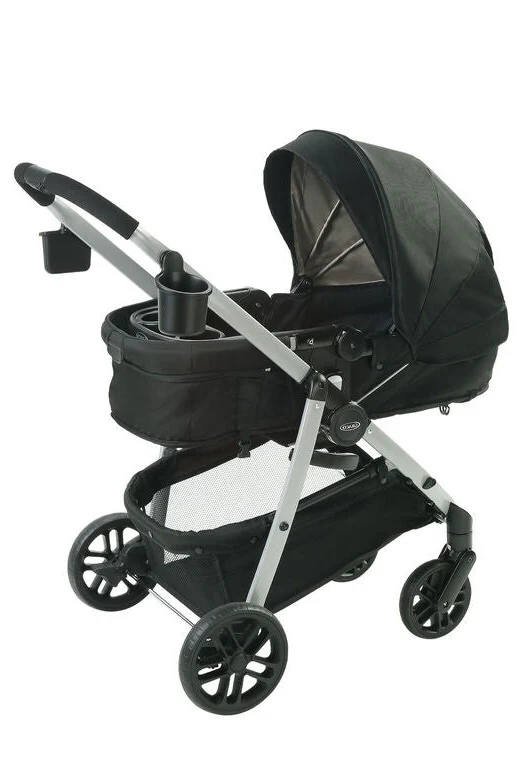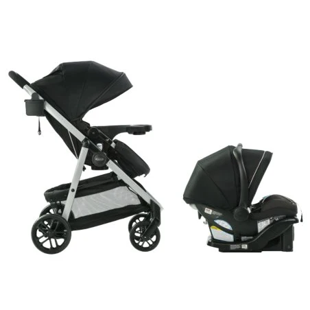 Le système de voyage Modes™ Pramette de Graco® procure plus de flexibilité, à maman et à son enfant, de la naissance jusqu’à ses premiers pas. 3 poussettes en 1: 1. siège d’auto pour bébé 2. poussette pour bébé 3. poussette pour tout-petit; de la naissance aux premiers pas. Le siège pour tout-petit se convertit en une véritable poussette de bébé, pour offrir des promenades en tout confort dès le premier jour. Pour vous offrir encore plus d’options, le système de voyage inclut le siège d’auto pour bébé SnugLock® 35 de Graco®, qu’il est possible d’orienter vers le parent ou vers l’avant, en fonction de l’humeur de bébé. Avec un système de voyage Modes™ Pramette, vous appréciez chacun de vos déplacements et ses caractéristiques pratiques, comme son mécanisme de pliage à une seule main, qui facilite grandement le rangement et les déplacements. Comprend une variété de commodités supplémentaires: plateau amovible pour enfant avec porte-gobelets, plateau-parent avec porte-gobelet et fente pour le téléphone, grand auvent avec fenêtre « peek-a-boo » pour s’assurer que bébé est toujours confortable.