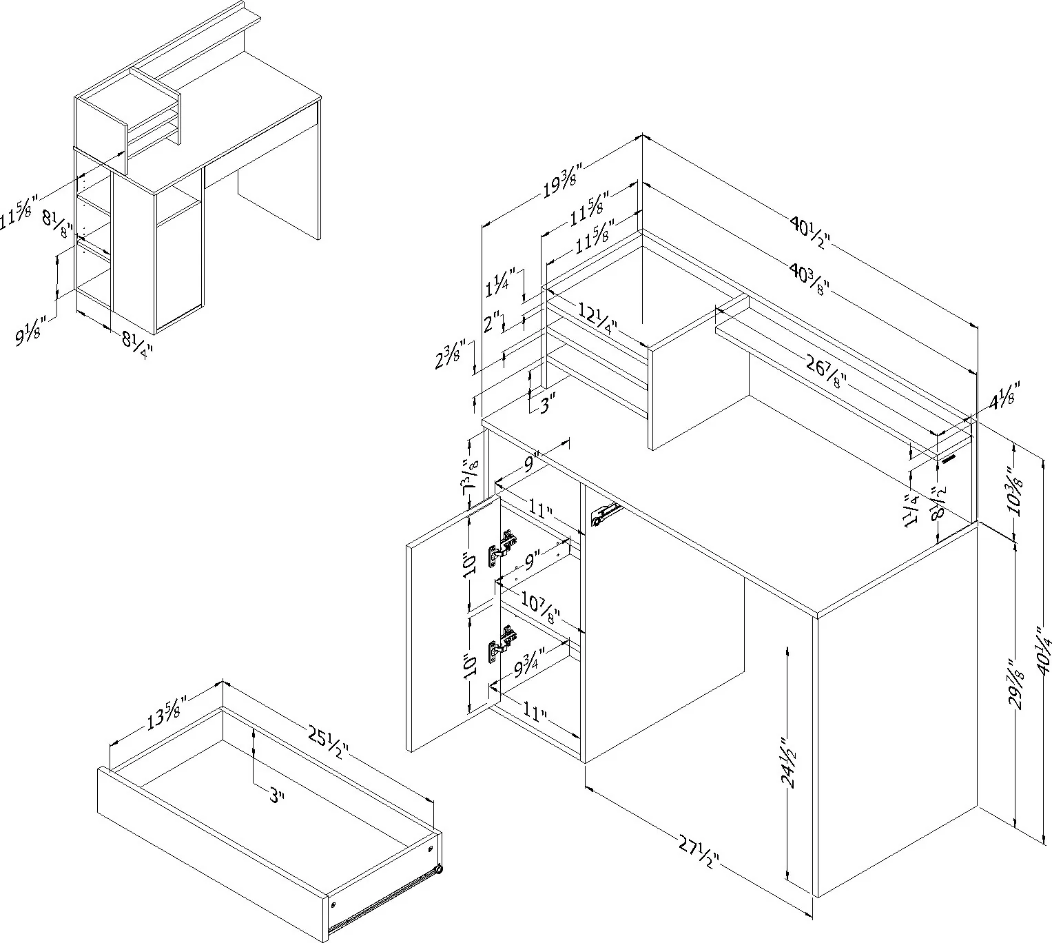 Nos designers ont conçu cette table afin qu’elle soit la plus fonctionnelle possible. Le large tiroir peut accueillir les items que vous souhaitez garder hors de vue, tandis que le cabinet avec tablette ajustable vous permet de configurer votre espace de rangement selon vos besoins. Un espace ouvert est aussi à votre disposition à votre gauche pour rendre l’accès à certains matériaux plus facile. Finalement, un espace de rangement latéral à deux tablettes ajustables a aussi été ajouté au côté du meuble. Même si sa dimension est sensiblement petite, cette table est exploitée au maximum. Ça la rend parfaite pour les pièces plus petites! Une chose est certaine, vous ne manquerez pas d’espace.
