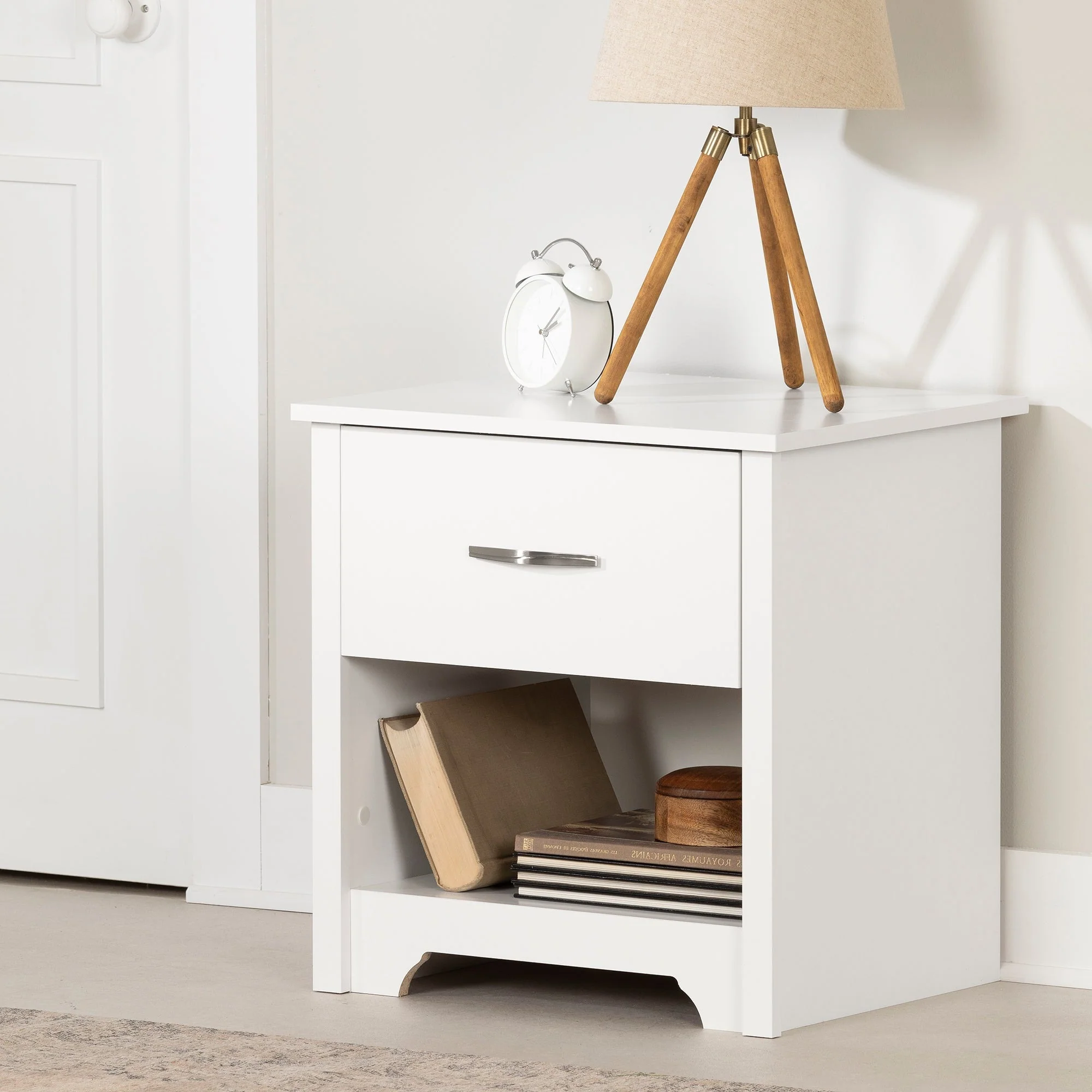 Table de chevet 1 tiroir Fusion – Blanc solide