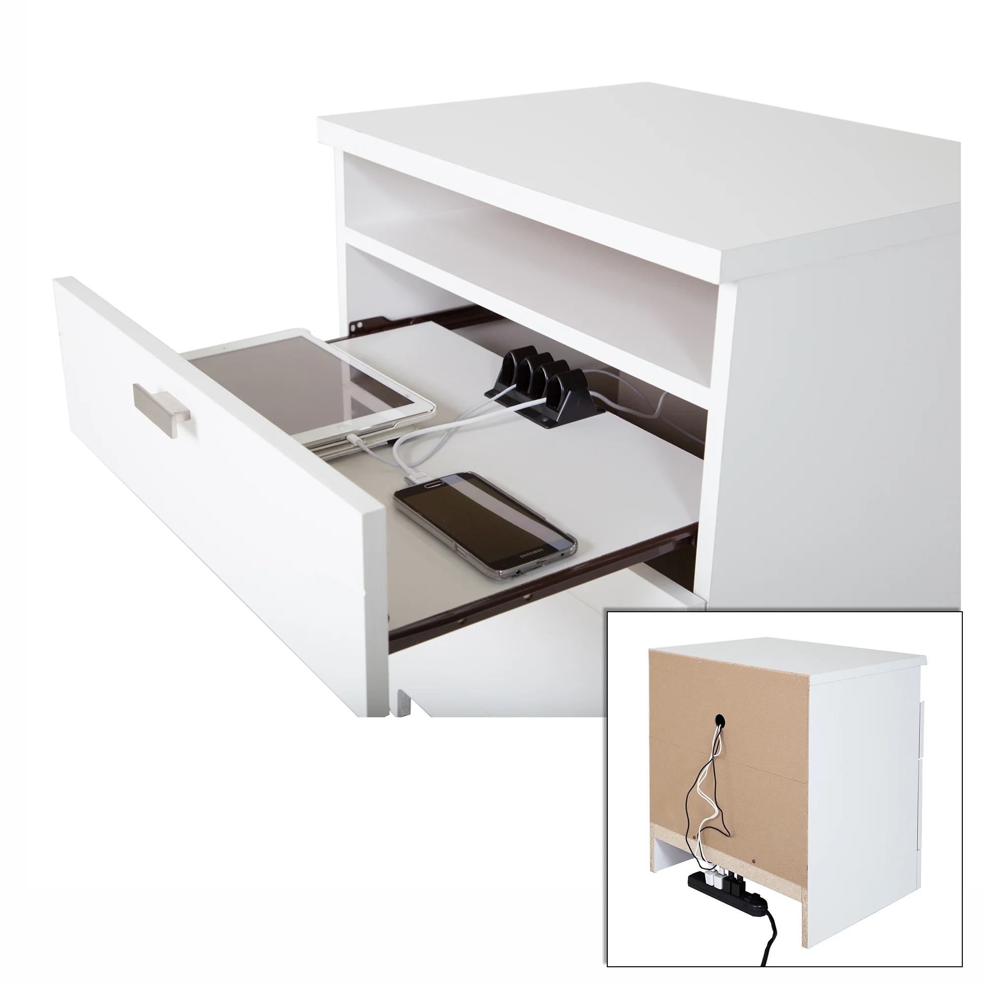 Table de chevet avec organisateur de fils Reevo – Blanc solide