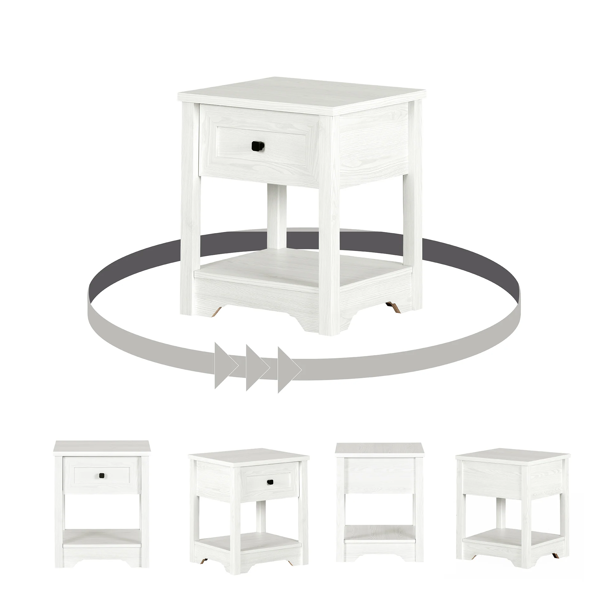 • FINI TOUT LE TOUR : orientez ce meuble comme vous le souhaitez. Il sera beau dans tous ses angles! Il pourrait même vous servir comme table d’appoint à côté d’une chaise de lecture.
