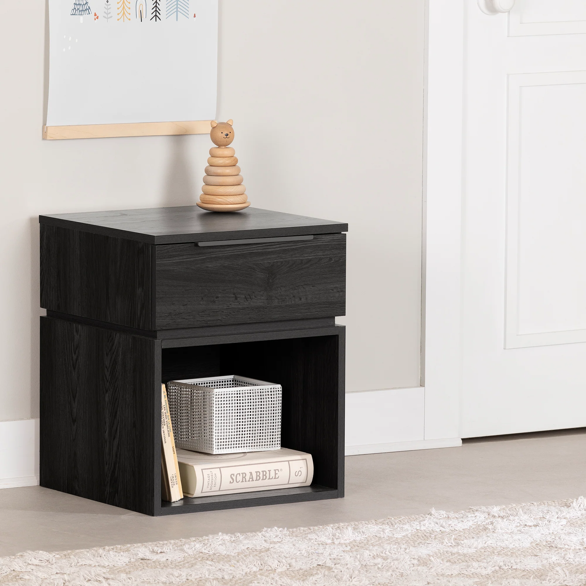 Une belle table de chevet complète à merveille le décor d’une pièce, tout en lui ajoutant de la fonctionnalité. Cette petite table de nuit hyper tendance servira à votre petit bout’chou tous les jours. Dans l’espace ouvert, au bas, il pourra y mettre ses livres, comptines, ou jeux préférés. Dans le tiroir du haut, vous pourrez ranger quelques vêtements légers, comme des bas ou des sous-vêtements. Sur sa surface, vous pourrez y ajouter des décorations et une lampe de chevet. Cette table d’appoint fera partie intégrante de la routine du matin ou de sommeil de votre enfant.