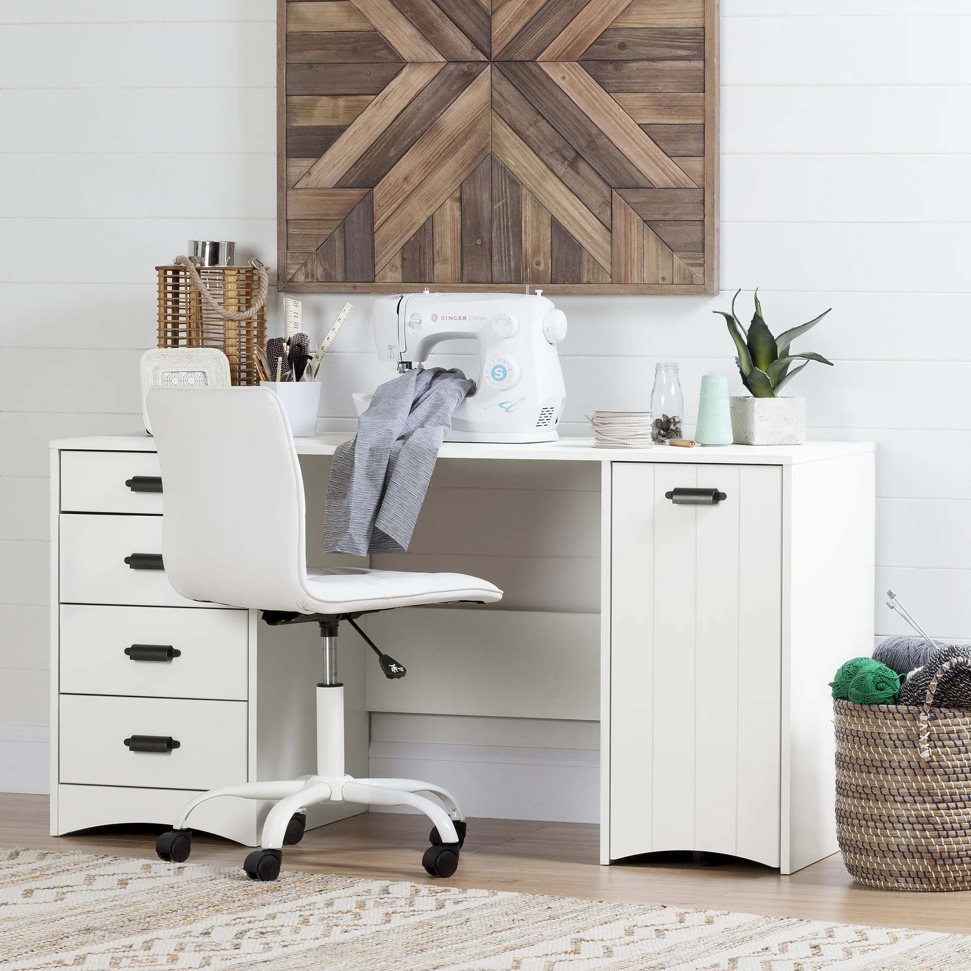 Nous avons dessiné le parfait bureau tendance et stylé pour alimenter votre créativité! On adore son style Farmhouse charmant et authentique, qui se remarque par ses larges poignées en métal ainsi que les rainures décoratives sur sa porte. Ça lui donne un look plus doux et naturel, digne d’une maison de campagne!