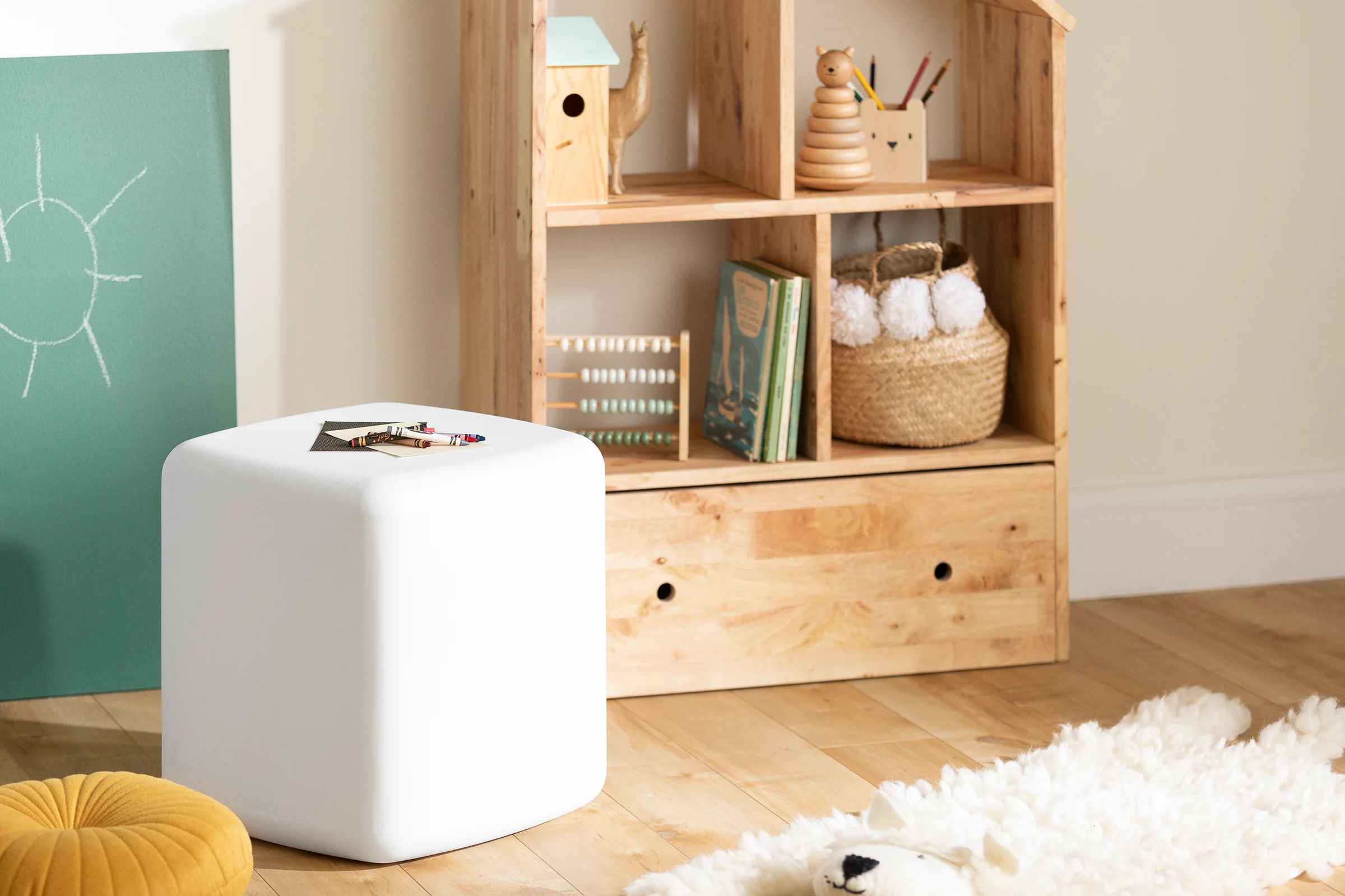 Un tabouret qui peut aussi servir de table d’activités pour enfants