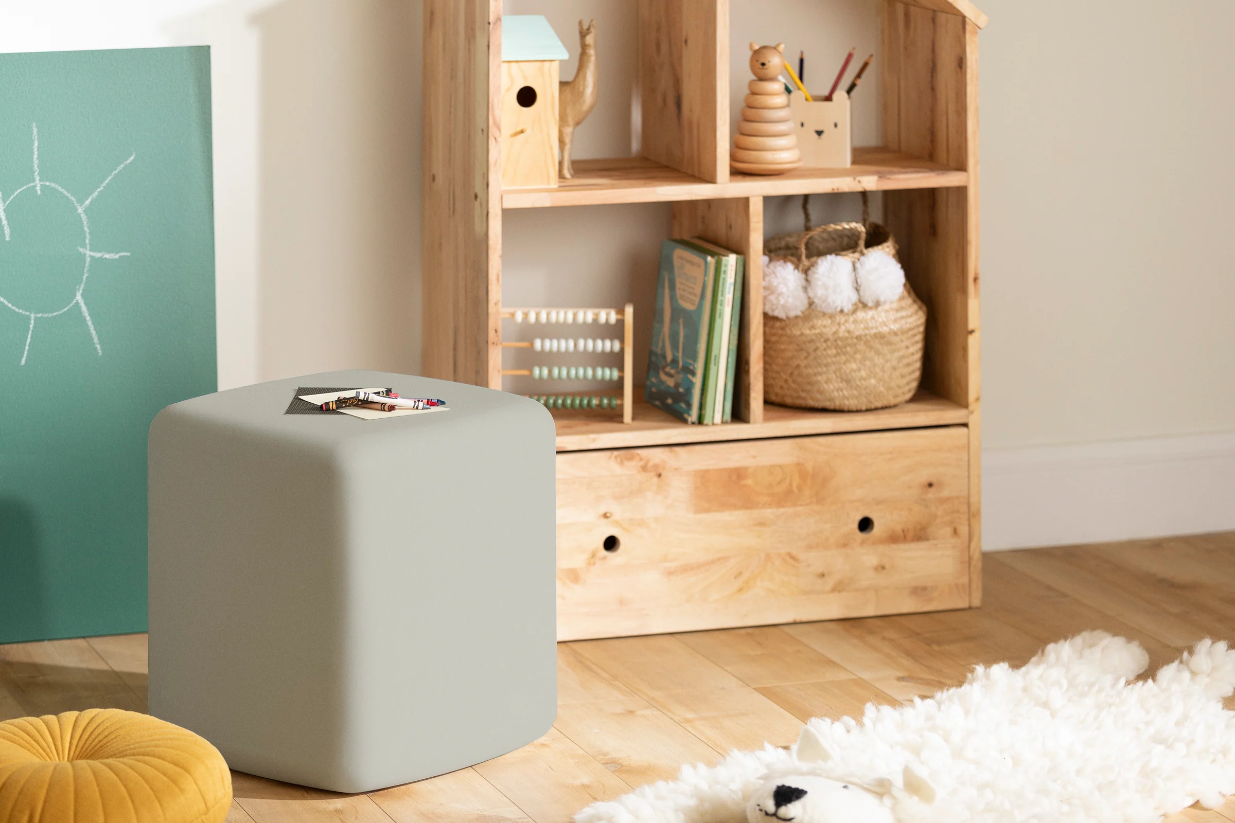 Un tabouret qui peut aussi servir de table d’activités pour enfants