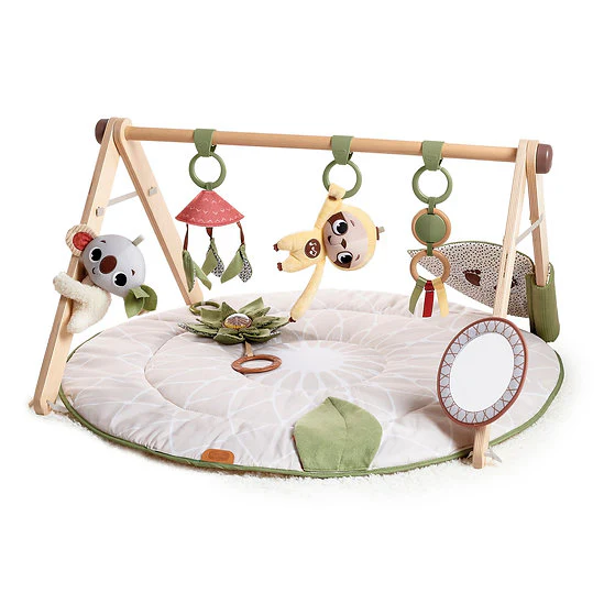 Les couleurs naturelles, les textures amusantes et les sons combinent le tapis d’éveil Boho Chic Gymini stimulent les sens des bébés dès les premiers jours. La merveilleuse collection d’activités et de jouets inspirera votre bébé à pratiquer ses compétences et à passer plus de temps sur le ventre. Allongé sur le dos, laissez votre bébé pratiquer la coordination œil-main en essayant d’atteindre et manipuler le trio mobile en eucalyptus et les anneaux en bois.