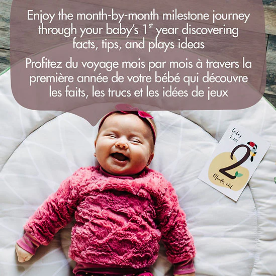 Stimulant toutes les capacités d’éveil, ce tapis d’activités ludiques et tendance comprend 20 activités créatives. Le tapis d’activité doux à double rembourrage est fabriqué avec des tissus de qualité supérieure et est combiné avec une arche de jeu en bois naturel équipée de divers adorables jouets suspendus. Le design tendance et la palette de couleurs unique de la collection Boho Chic intègreront l’intérieur de votre maison et créeront un environnement paisible et simple qui favorisera l’exploration. Le Gymini est livré avec un ensemble de cartes d’étape mois par mois, ce qui offre une merveilleuse façon de créer des souvenirs adorables qui célèbrent la croissance de votre bébé. Il vous suffit de retourner la carte pour découvrir une astuce utile qui vous aidera à en savoir plus sur le développement de votre bébé à ce stade.