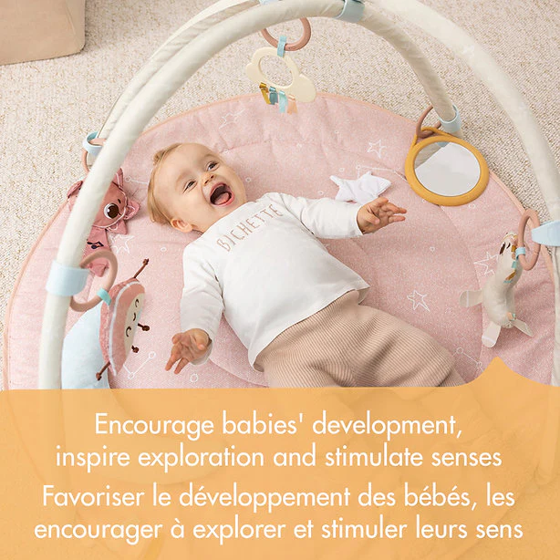 Avec 20 activités passionnantes soigneusement adaptées aux stades de développement de votre bébé, ce tapis de jeu stimule l’envie naturelle d’explorer et développe la motricité de votre bébé avec une variété de jouets de développement amovibles et amusants.