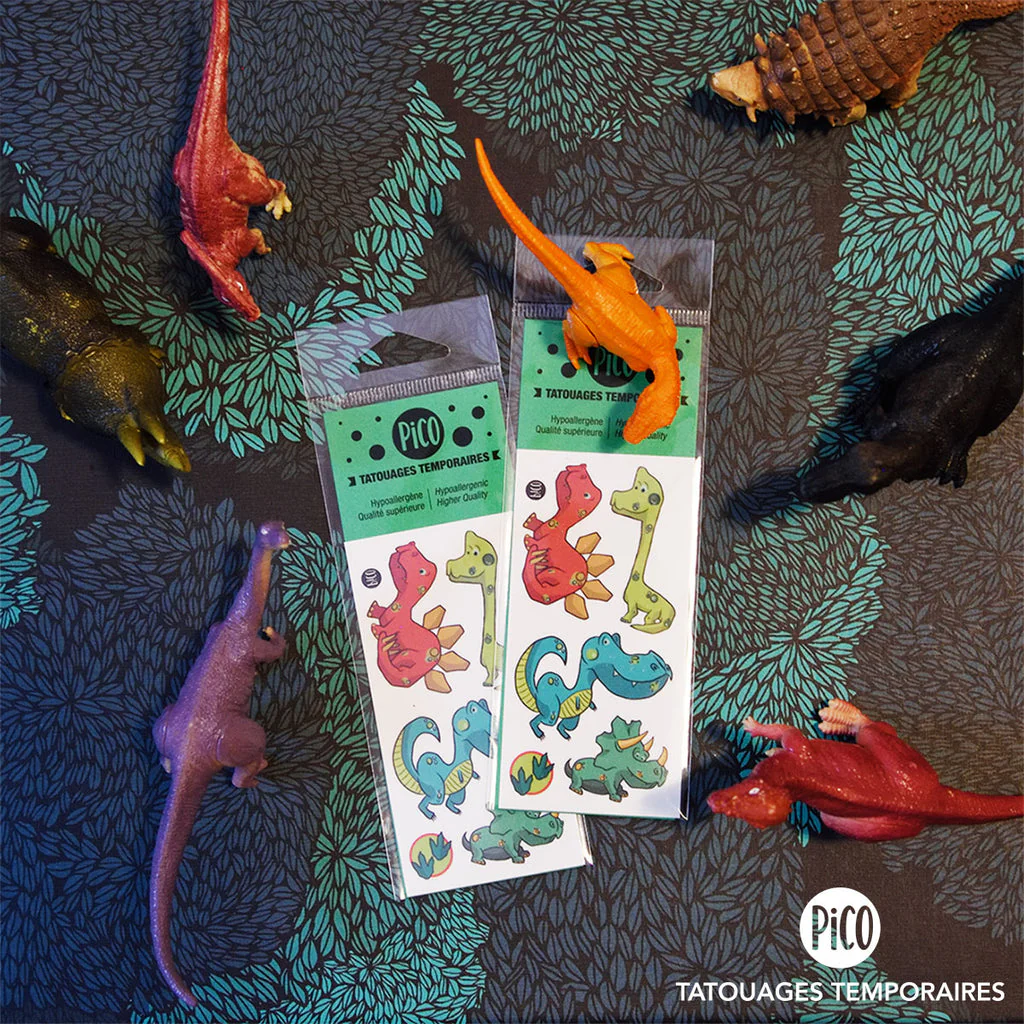 Réf.: PICO 118Fabricant: Pico Tatouages temporaires de jolis et gentils dinosaures. Saviez-vous que nos dinosaures sont les grands amis de nos jolis dinos-cornes. Chaque emballage contient une feuille de tatouages temporaires. Le design des tatouages temporaires est fait au Québec.L’impression des tatouages est réalisée aux États-Unis.L’impression est d’une qualité supérieure, hypoallergène, non-toxique et certifiée FDA […]