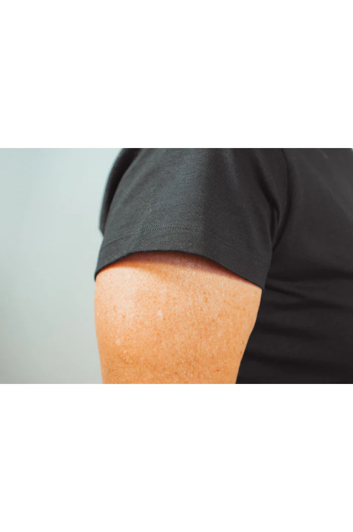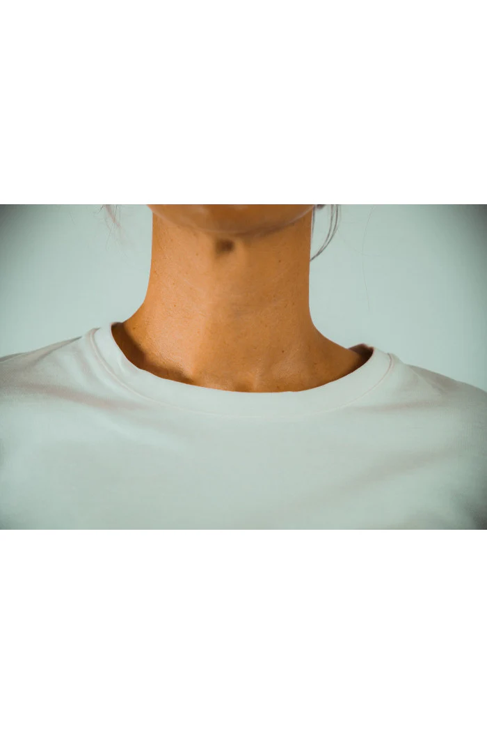 Un col fin et subtilement fermé pour une touche d’élégance. Le tissu, légèrement épais, assure un tombé impeccable tout en minimisant les risques de déformation, de trous et de transparence. Une couleur naturelle non teinte