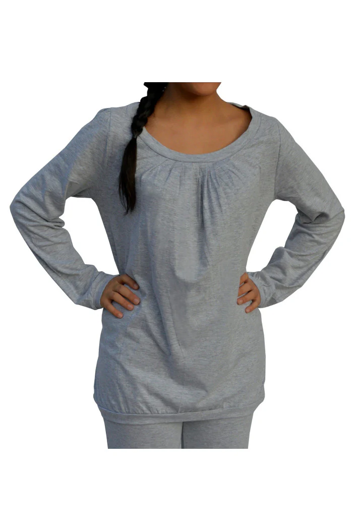 Ce tee shirt manches longues en 100 % coton biologique est extrêmement doux et confortable. Esthétique avec ses plis plats sous une encolure assez échancrée, vous pouvez l’utiliser à votre guise : vêtement d’intérieur, de nuit ou de sport.