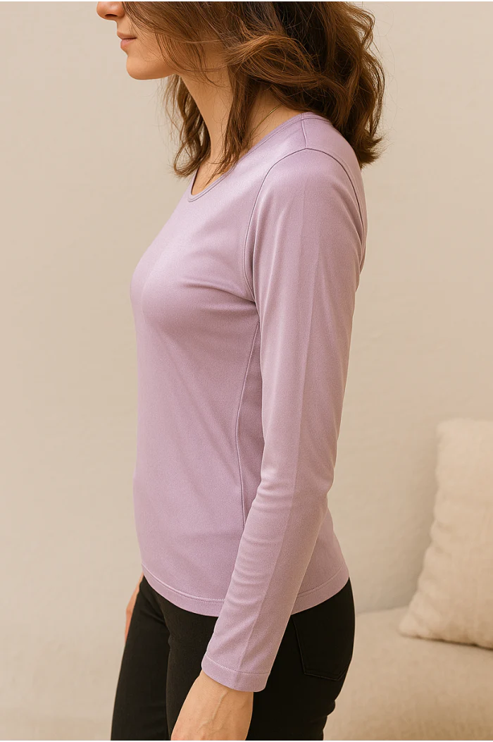 Tee-shirt manches longues soie parme