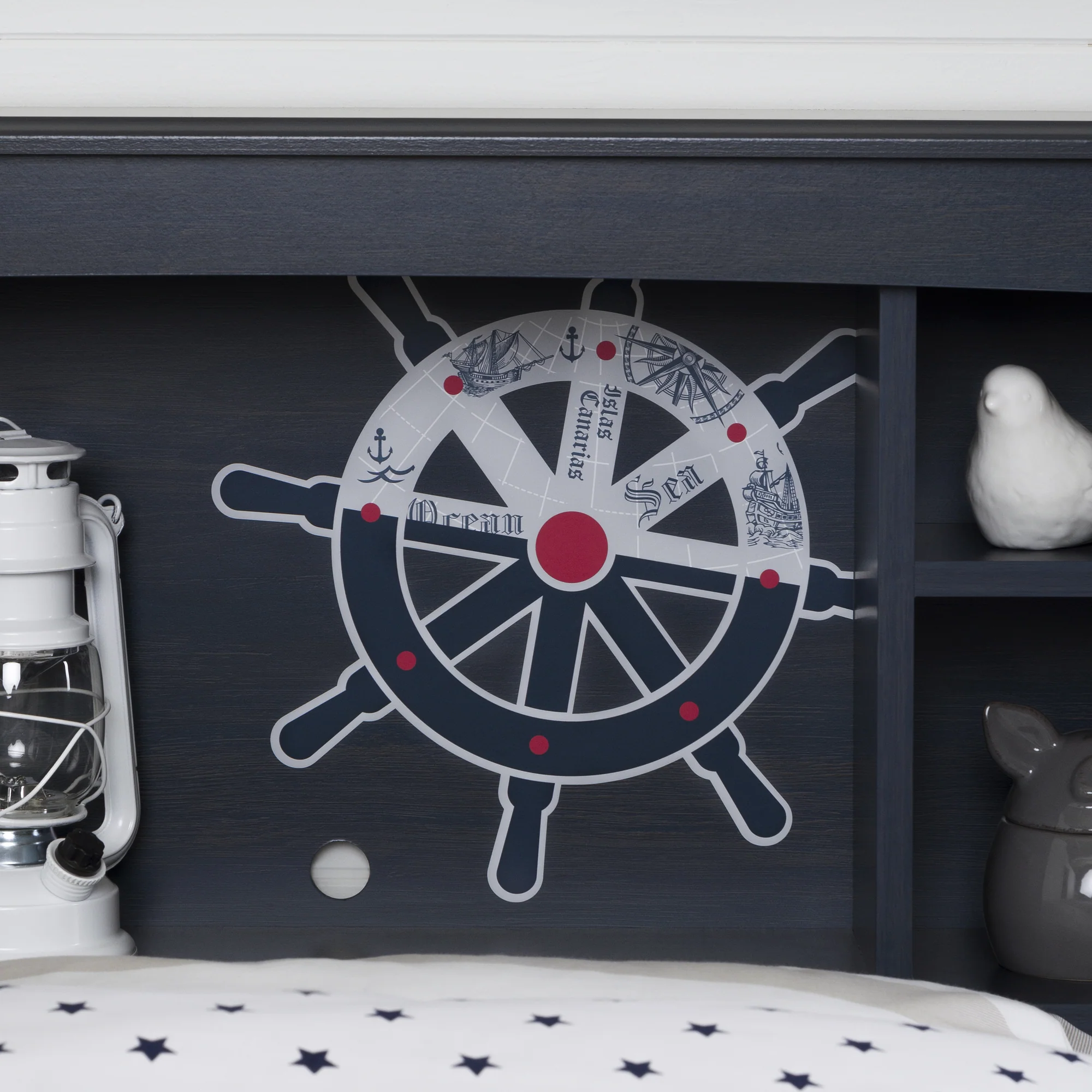 Avec son décalque de roue de bateau, cette tête de lit amusante contribuera à créer une atmosphère de navigation. Avec ses nombreux compartiments de rangement ouverts et faciles d’accès, cette tête de lit bibliothèque est parfaite pour répondre aux besoins de rangement de chevet. Vous pourrez garder vos livres et vos articles personnels organisés et à portée de main en cas de besoin.