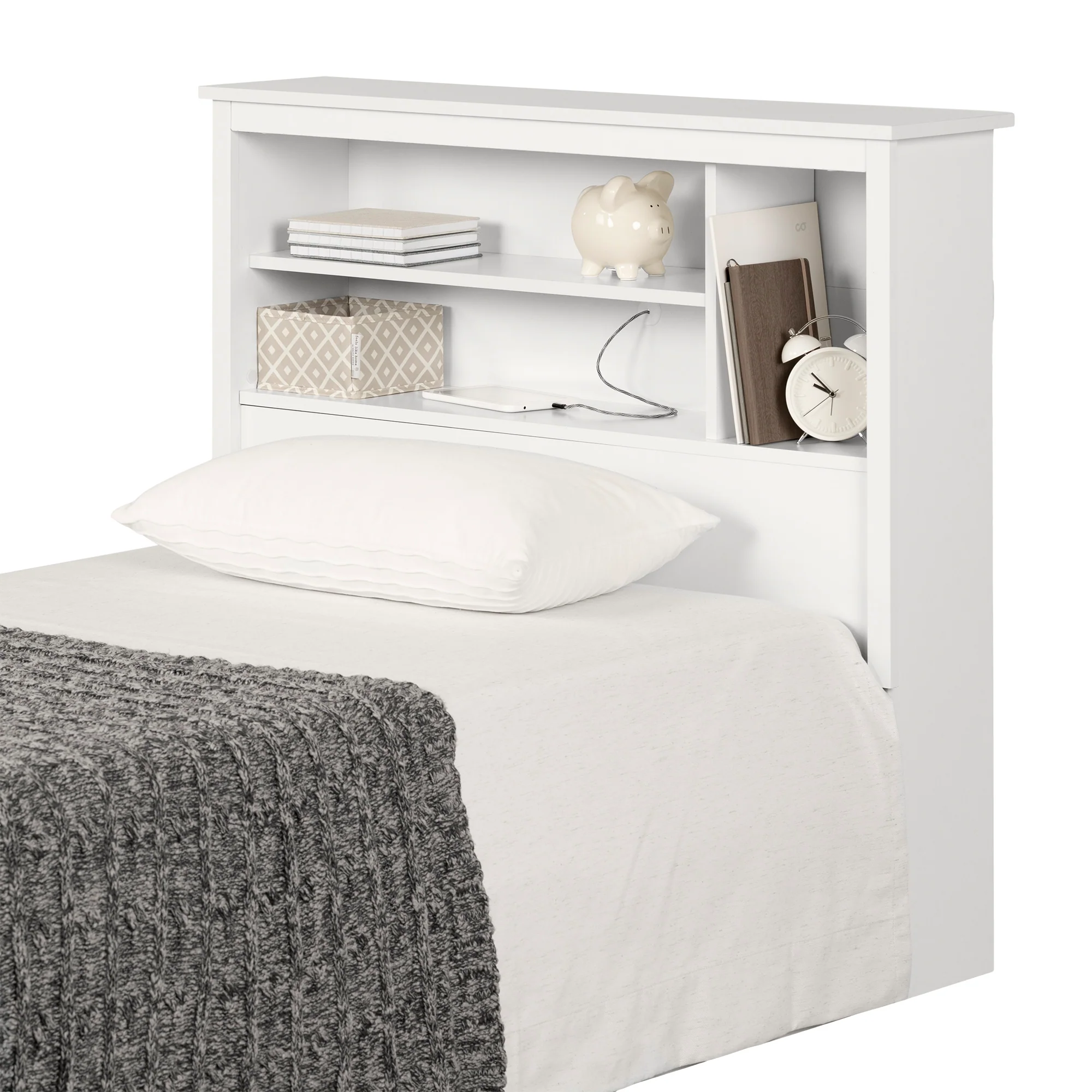 Tête de lit bibliothèque simple 39″ Vito-Blanc solide