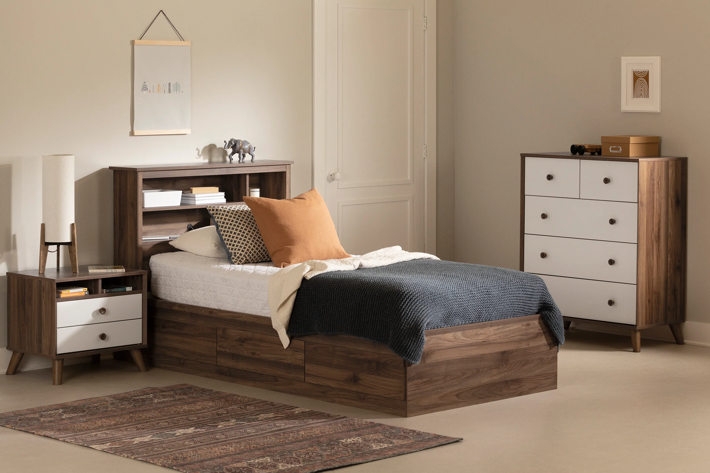 Tête de lit bibliothèque simple 39″ Yodi – Noyer naturel