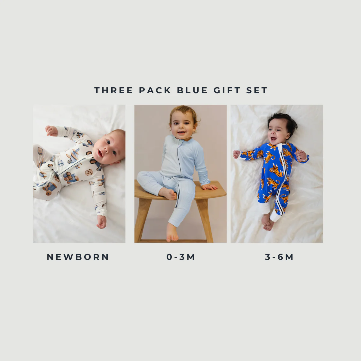 This gift set features the following Zipsters, packaged together in a Zipster branded gifting box: Zipster Playtime Blue – Newborn (50/56) Zipster Ribbed Baby Blue – 0-3M (56/62) Zipster Tiger 3-6M (62/68) Zipsters are a must have, providing comfort for your baby, and simplicity for you. For the details: • Zipsters are made from super […]