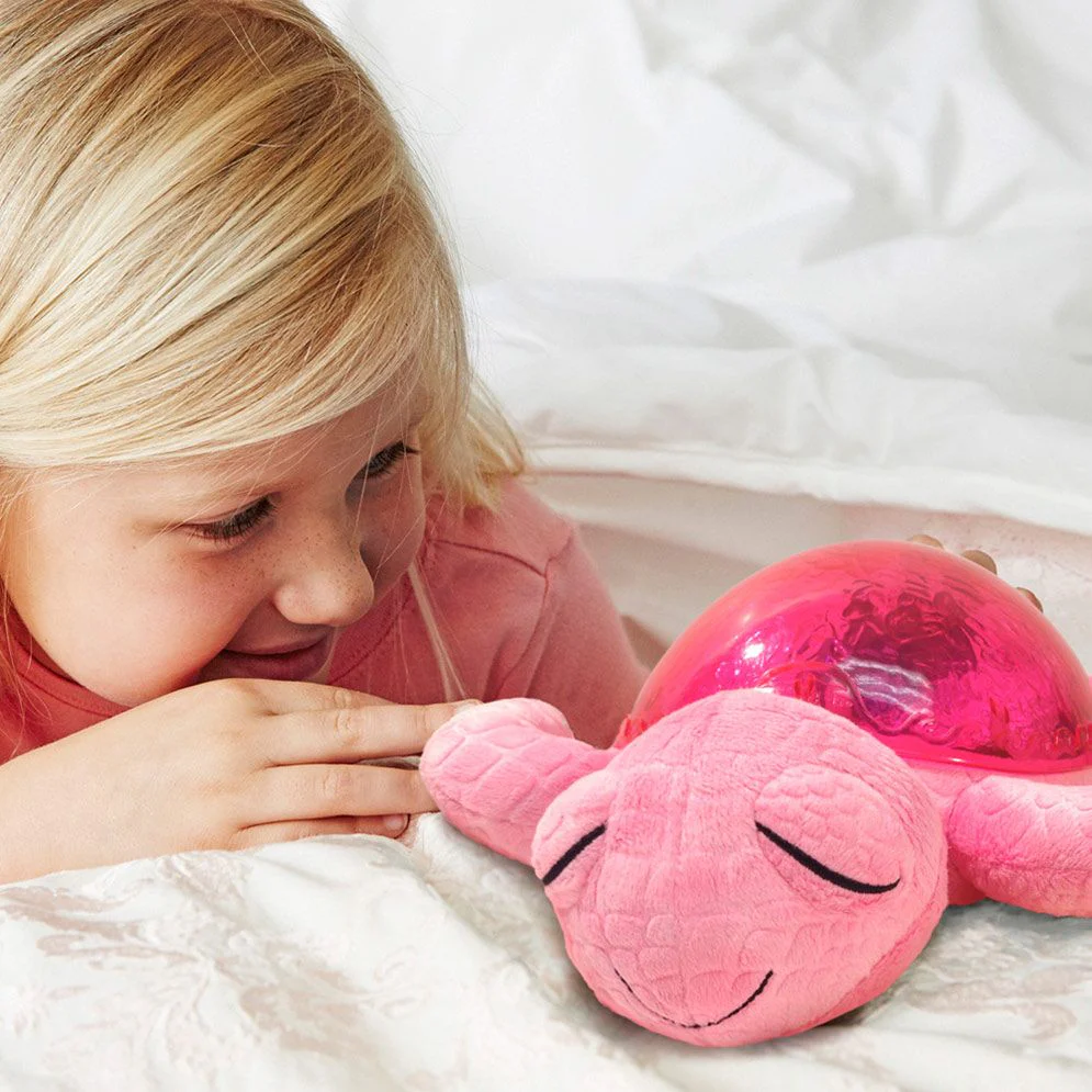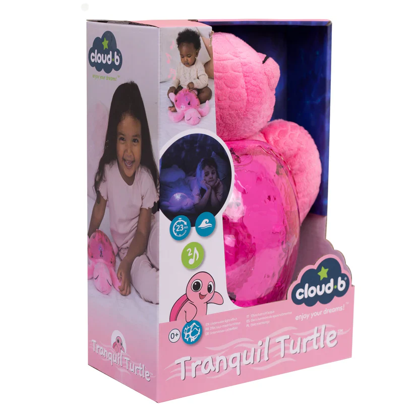La veilleuse Tranquil Turtle apaise bébé dès sa naissance et rassure les enfants qui ont peur du noir. Douce peluche la journée, elle se transforme en veilleuse la nuit venue. Une mélodie marine et le son des vagues (bruit blanc) apaiseront bébé pour un sommeil relaxant. Son effet de lumière sous-marine est magique grâce aux projection de vagues en mouvements.