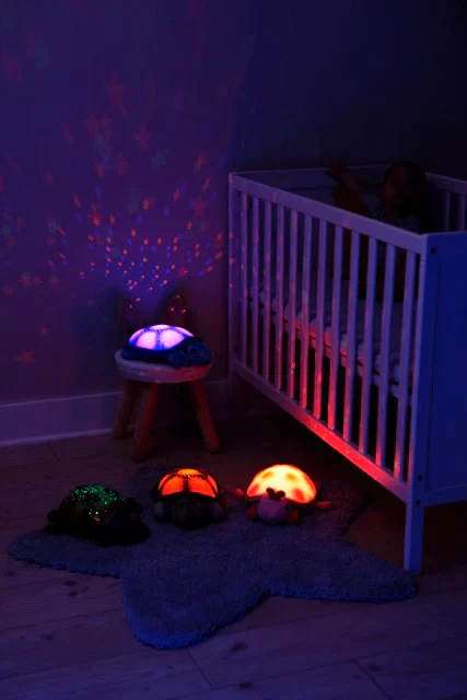 Un jouet durant la journée, la tortue se transforme la nuit en jolie veilleuse pour que bébé n’ai plus peur du noir.